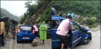 भवाली-अल्मोड़ा राजमार्ग पर गरमपानी के पास कार पर गिरा पत्थर