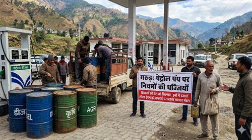 CNE REPORTER, गरुड़ (बागेश्वर): जनपद के गरुड़ क्षेत्र में स्थित एक पेट्रोल पंप इन दिनों विवादों के घेरे में है। पंप पर नियमों को ताक पर रखकर ईंधन वितरण करने के गंभीर आरोप लगे हैं। स्थानीय काश्तकारों और व्यापारियों का कहना है कि जहाँ आम जनता और किसानों को अपनी जरूरतों के लिए चंद लीटर तेल जुटाना मुश्किल हो रहा है, वहीं रसूखदारों को हजारों लीटर ईंधन ड्रमों में भरकर खुलेआम सप्लाई किया जा रहा है।