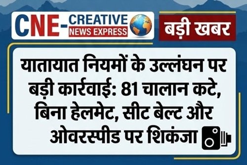 - कुल चालान: मोटर वाहन अधिनियम (मोटर व्हीकल एक्ट) के उल्लंघन पर कुल 81 वाहन चालकों के विरुद्ध कार्रवाई की गई।