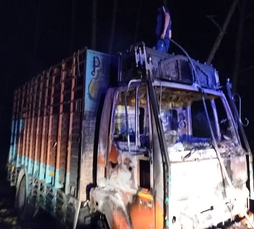अल्मोड़ा: आधी रात हो रही थी तस्करी, तो राह में आग का गोला बना शराब से लदा कैंटर