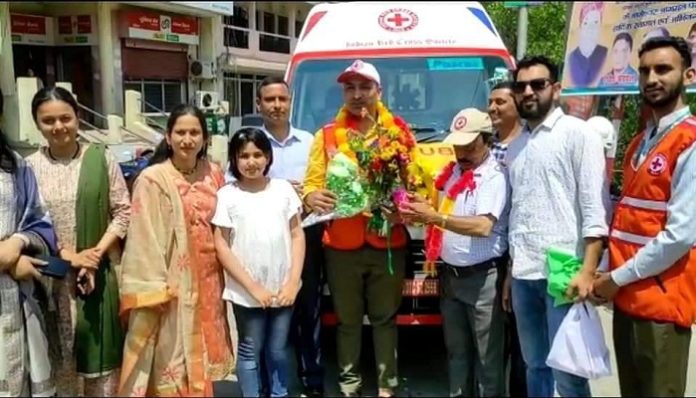 —एंबुलेंस के साथ जिला मुख्यालय पहुंचे सदस्यों का स्वागत