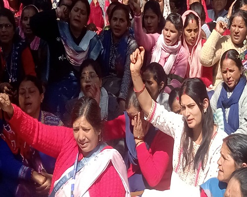 सीएनई रिपोर्टर, अल्मोड़ा: भारतीय मजदूर संघ के आह्वान पर आज उससे संबद्ध उत्तरांचल आंगनबाड़ी कर्मचारी संघ अल्मोड़ा तथा एनएचएम कर्मियों ने एकजुट होकर गांधी पार्क चौघानपाटा अल्मोड़ा में अपने हकों के लिए पुरजोर आवाज उठाई। उन्होंने धरना दिया और अपनी मांगों का ज्ञापन जिला प्रशासन के माध्यम से प्रधानमंत्री तथा केंद्रीय श्रम व रोजगार मंत्री को भेजे।