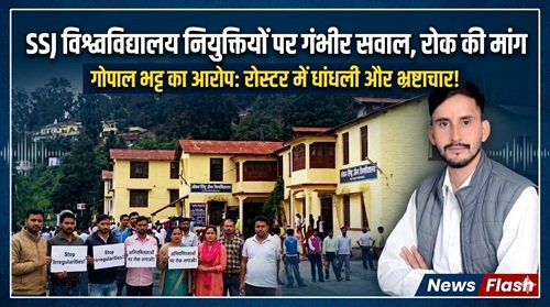 CNE REPORTER, अल्मोड़ा। सोबन सिंह जीना विश्वविद्यालय (SSJ) में प्राध्यापकों की नियुक्ति प्रक्रिया शुरू होते ही विवादों के घेरे में आ गई है। युवा कांग्रेस के प्रदेश महासचिव, क्षेत्र पंचायत सदस्य एवं वरिष्ठ अधिवक्ता गोपाल भट्ट ने विश्वविद्यालय प्रशासन पर अनियमितताओं और भाई-भतीजावाद के गंभीर आरोप लगाते हुए वर्तमान चयन प्रक्रिया को तत्काल प्रभाव से रोकने की मांग की है।