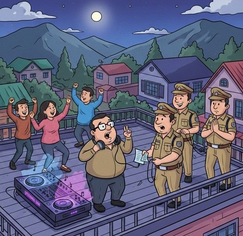 सूचना मिलते ही चौकी प्रभारी भोटिया पड़ाव, अनिल कुमार टीम के साथ मौके पर पहुंचे। जांच में रात 12:35 बजे नीलांचल कॉलोनी की एक छत पर तेज ध्वनि में संगीत बजाया जाना पाया गया। निर्धारित समय और ध्वनि सीमा का उल्लंघन करने पर डीजे स्वामी भूपेंद्र मौर्या का पुलिस एक्ट की धारा 51(3)/83 में चालान किया गया।