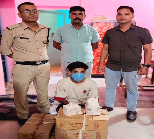तस्कर गिरफ्तार, 4 पेटी देशी व 1 पेटी अंग्रेजी शराब बरामद
