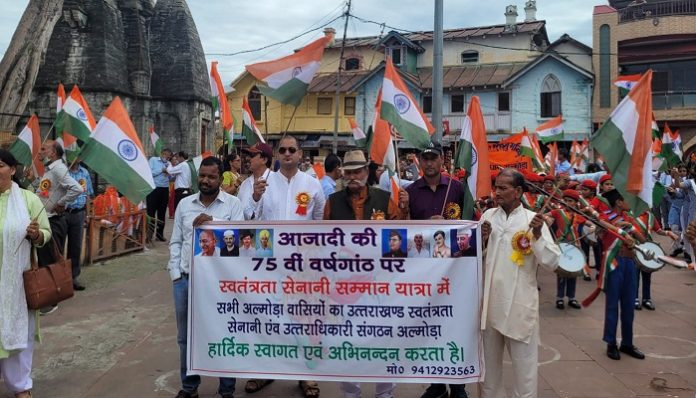 अगस्त क्रांति पर आज उत्तराखंड स्वतंत्रता सेनानी उत्तराधिकारी संगठन के बैनर तले आज अल्मोड़ा में स्वतंत्रता संग्राम सेनानी सम्मान यात्रा निकाली गई। इस भव्य सम्मान यात्रा के दौरान प्रेरक नारों से देश प्रेम की भावना जागृत की गई। वहीं स्वतंत्रता संग्राम सेनानियों के संघर्ष को याद किया गया। वहीं नन्हे बच्चों की झांकी, छोलिया नर्तकों की टोली व वाद्य यंत्रों की मधुर धुन ने आयोजन पर चार चांद लगाए।