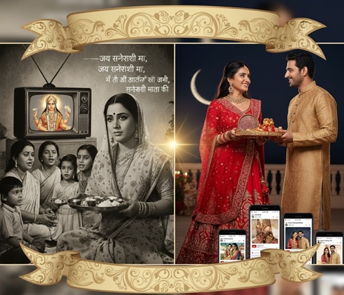 इसी तरह, आज के डिजिटल युग में सोशल मीडिया ने वही भूमिका निभाई है जो उस समय टेलीविज़न ने निभाई थी। जिस प्रकार “जय संतोषी माँ” ने संतोषी माता के व्रत को पूरे देश में फैलाया था, उसी प्रकार आज सोशल मीडिया ने करवाचौथ को राष्ट्रीय आस्था का पर्व बना दिया है।