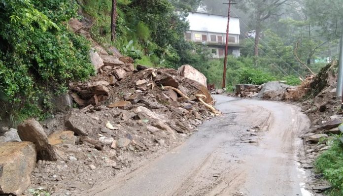 अल्मोड़़ा—रानीखेत मुख्य सड़क में यहां लक्ष्मेश्वर में खुटकुड़ी भैरव मंदिर के पास तेज बारिश के चलते रात ढाई बजे के आसपास पहाड़ी दरक पड़ी। जिससे भारी मलबा गिरने से मोटरमार्ग बंद हो गया। रात ही जन अधिकार मंच के संयोजक त्रिलोचन जोशी ने दूरभाष पर जिला आपदा अधिकारी राकेश जोशी को इसकी जानकारी दी।