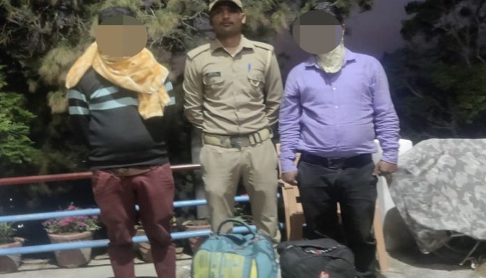 पुलिस से मिली जानकारी के अनुसार सल्ट थानाध्यक्ष गोविन्द सिंह मेहता मय आरक्षी मनमोहन सिंह व भूपेन्द्र पाल के साथ चेकिंग कर रहे थे। इसी बीच चिमटाखाल के पास दो लोगों के कब्जे से 02 बैगों में से 11 बोतल, 24 अद्धे व 96 पव्वे अवैध देशी मसालेदार शराब मिली। जो अवैध रूप से ले जाई जा रही थी। इसकी कीमत 14,800 रुपये बताई गई है। पुलिस ने दो आरोपियों अरविन्दर सिंह पुत्र ज्ञान सिंह, निवासी ग्राम मल्ला अछरौन, सल्ट व पुष्कर सिंह पुत्र आनन्द सिंह, निवासी ग्राम पिनाकोट, सल्ट, अल्मोड़ा को गिरफ्तार कर लिया और उनके खिलाफ थाना सल्ट में 60 आबकारी अधिनियम के अन्तर्गत अभियोग पंजीकृत कर आवश्यक कार्यवाही की।