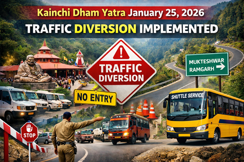 सीएनई रिपोर्टर, हल्द्वानी/नैनीताल। श्री कैंची धाम में श्रद्धालुओं की भारी भीड़ को देखते हुए रविवार, 25 जनवरी 2026 को यात्रा मार्ग पर विशेष यातायात डायवर्जन व्यवस्था लागू की जाएगी। प्रशासन द्वारा यह व्यवस्था प्रातः 07:00 बजे से प्रभावी रहेगी, जो वाहनों के दबाव को नियंत्रित करने हेतु लागू की जा रही है।