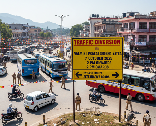 सीएनई रिपोर्टर, हल्द्वानी। भगवान वाल्मीकि प्रकट दिवस के अवसर पर 7 अक्टूबर 2025 को हल्द्वानी शहर में निकलने वाली शोभायात्रा के चलते यातायात व्यवस्था में बड़ा बदलाव किया गया है। यह डायवर्जनप्लान दोपहर 2 बजे से शोभा यात्रा की समाप्ति तक प्रभावी रहेगा। अगर आप 7 अक्टूबर को हल्द्वानी शहर में यात्रा कर रहे हैं, तो इस रूट और ट्रैफिकडायवर्जन की जानकारी होना आपके लिए अत्यंत आवश्यक है।