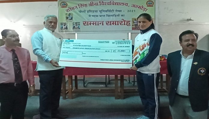सोबन सिंह जीना विश्वविद्यालय, अल्मोड़ा में आज सम्मान समारोह आयोजित हुआ। जिसमें ‘खेलो इंडिया यूनिवर्सिटी गेम्स’ में पदक जीतने वाली वि​श्वविद्यालय की महिला बॉक्सिंग टीम के खिलाड़ियों को सम्मानित किया गया।