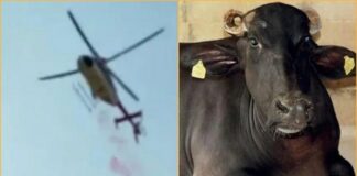 MLA ने हेलीकॉप्टर से जनता पर बरसाए फूल और हो गई भैंस की मौत