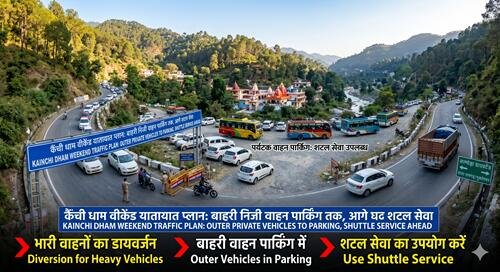 CNE REPORTER, नैनीताल। जनपद में कैंची धाम, भवाली और भीमताल क्षेत्र में वीकेंड पर बढ़ने वाली भारी भीड़ और जाम की स्थिति से निपटने के लिए प्रशासन ने सख्त यातायात एवं डायवर्जन प्लान लागू कर दिया है। सबसे महत्वपूर्ण निर्णय के तहत, अब बाहरी राज्यों और जनपदों से आने वाले पर्यटकों के निजी वाहनों को निर्धारित पार्किंग स्थलों पर ही रोक दिया जाएगा, जहाँ से उन्हें शटल सेवा के माध्यम से मंदिर दर्शन के लिए भेजा जाएगा।