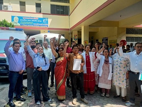 प्रांतीय चिकित्सा सेवा संघ की जिला इकाई की आपात बैठक जिला अस्पताल में हुई। सभा में वक्ताओं ने कहा कि उन्हें समाचार पत्रों के माध्यम से जानकारी मिली है कि बाल रोग विशेषज्ञ डॉ. अंकित कुमार को प्रतिकूल प्रविष्टि दी गई है। साथ ही सीएमएस डॉ. तपन शर्मा के विरुद्ध अनुशासनात्मक कार्रवाई की गई है। अन्य स्टाफ पर भी कार्रवाई की गई है। इस कार्रवाई का डॉक्टरों ने एक स्वर से विरोध किया।