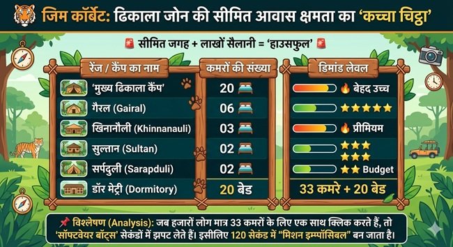 📊 जिम कॉर्बेट: ढिकाला जोन की सीमित आवास क्षमता का ‘कच्चा चिट्ठा’
