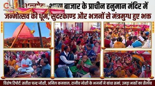 - सतीश चन्द्र जोशी, अनिल कनवाल और राजीव जोशी ने अपनी सुरीली आवाज में जब हनुमान जी के महिमा का गुणगान किया, तो उपस्थित श्रोता मंत्रमुग्ध होकर झूमने पर मजबूर हो गए। भक्ति गीतों की स्वर लहरियों ने हर किसी को भाव-विभोर कर दिया।