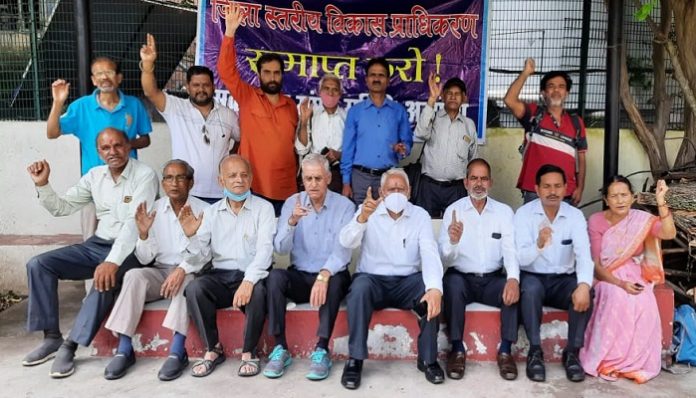 जिला स्तरीय विकास प्राधिकरण को समाप्त करने की मांग को लेकर सर्वदलीय संघर्ष समिति ने आज मंगलवार को गांधी पार्क चौघानपाटा में धरना दिया तथा प्रदेश की भाजपा सरकार के खिलाफ जमकर नारेबाजी की। धरने के दौरान समिति के संयोजक/नगरपालिका अध्यक्ष प्रकाश चन्द्र जोशी ने कहा कि जब तक प्राधिकरण समाप्त नहीं किया जाता, तब तक संघर्ष जारी रखा जाएगा।
