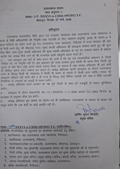 सीएनई रिपोर्टर, पनुवानौला : धौलादेवी ब्लॉक के ग्राम गैराड निवासी पूरन सिंह बिष्ट को उत्तराखंड उच्च न्यायालय, नैनीताल में राज्य सरकार की ओर से पैरवी करने हेतु मुख्य स्थायी अधिवक्ता (Chief Standing Counsel) नियुक्त किया गया है।