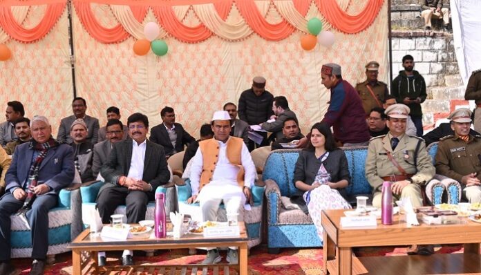 पुलिस लाइन अल्मोड़ा में आयोजित कार्यक्रम में जनपद के प्रभारी मंत्री डॉ. धन सिंह रावत ने प्रतिभाग कर ध्वजारोहण किया तथा कार्यक्रम में उपस्थित समस्त जनप्रतिनिधियों, पुलिस एवं प्रशासन के अधिकारियों तथा कर्मचारियों समेत स्थानीय लोगों को संविधान की प्रस्तावना की शपथ दिलाई। सामूहिक राष्ट्रगान को गाया गया। प्रभारी मंत्री ने सभी देश एवं प्रदेशवासियों को गणतंत्र दिवस की शुभकामनाएं प्रेषित की। अपने संबोधन में उन्होंने कहा कि हम अपने प्रदेश को देश के अग्रणी राज्यों में शामिल करने को लेकर प्रतिबद्ध हैं एवं जल्द ही नशा मुक्त उत्तराखंड, साक्षर उत्तराखंड तथा संपन्न उत्तराखंड का हमारा संकल्प पूरा होगा। उन्होंने कहा कि भारत अब विश्व की चौथी बड़ी अर्थव्यवस्था की ओर अग्रसर है।