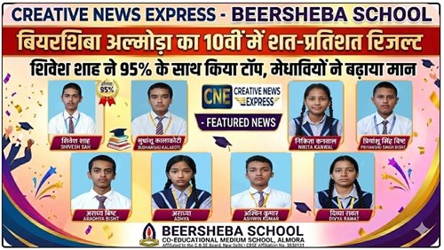 CNE REPORTER, अल्मोड़ा: सीबीएसई (CBSE) 10वीं बोर्ड परीक्षा 2026 के परिणामों में बियरशिबा सीनियर सेकेंडरी स्कूल, भवानी दत्त परिसर (हीरा डुंगरी) ने एक बार फिर अपनी सफलता का परचम लहराया है। विद्यालय का परीक्षाफल शत-प्रतिशत (100%) रहा है। परीक्षा परिणाम घोषित होते ही विद्यालय परिसर में जश्न का माहौल छा गया और सफल छात्र-छात्राओं के चेहरे खिल उठे।
