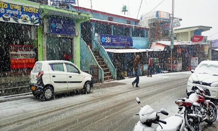 खराब मौसम के चलते अभी—अभी अल्मोड़ा नगर क्षेत्र में आज बर्फवारी शुरू हो गई है। जनपद के कई उच्च इलाकों में बर्फबारी हो रही है। तापमान शून्य के करीब पहुंचने से कड़ाके की सर्दी पड़ रही है। शीतलहर से सामान्य जनजीवन बुरी तरह प्रभावित हो गया है।