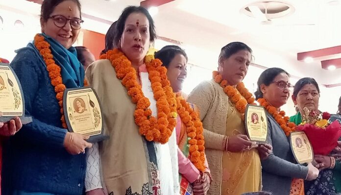 शिक्षा के क्षेत्र में गंगा बिष्ट, स्वास्थ्य के क्षेत्र में डॉ. प्रीति पंत, पर्यावरण एवं स्वच्छता के क्षेत्र में डा. वसुधा पंत, मीडिया के क्षेत्र में कंचना तिवारी, आशा कार्यकर्ता चंपा पांडे, स्वरोजगार के क्षेत्र में कमला भट्ट, पार्वती बिष्ट व निर्मला फर्त्याल, ऐपण कला क्षेत्र में काम करने वाली नमिता तिवारी, मशरूम उत्पादन कर स्वरोजगार कर रही सांस्कृतिक क्षेत्र में कार्य करने वाली लता पांडे, उच्च शिक्षा के क्षेत्र में डॉ. भीमा मनराल को सम्मानित किया गया। इनके अलावा खेलकूद में हीरा कनवाल, विकलांग बच्चों को शिक्षा देने में जुटी मनोरमा जोशी को भी सम्मानित किया गया।