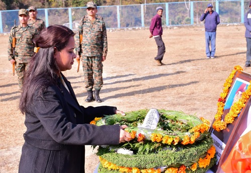 इस अवसर पर जिलाधिकारी आकांक्षा कोंडे, पैरा लेफ्टिनेंट कर्नल हरी लुइस, विधायक सुरेश गड़िया, दर्जा राज्य मंत्री शिव सिंह विष्ट, उपजिलाधिकारी अनिल चनयाल, सैनिक कल्याण अधिकारी कर्नल विजय मनराल सहित जिला प्रशासन, पुलिस प्रशासन, सेना के अधिकारी एवं बड़ी संख्या में स्थानीय नागरिक मौजूद रहे।
