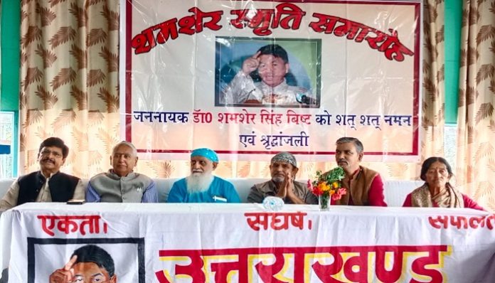 जननायक स्व. डा. शमशेर सिंह बिष्ट की चौथी पुण्य तिथि यहां शमशेर स्मृति दिवस समारोह के रूप में मनाई गई। उत्तराखंड लोक वाहिनी द्वारा आयोजित समारोह में जाने-माने विषय विशेषज्ञों ने ‘हिमालय के संकट व समाधान’ तथा ‘आज का उत्तराखंड व चुनौतियां’ विषय पर व्याख्यान दिए। जिसमें प्रकृति से छेड़छाड़ को इस पहाड़ी राज्य के लिए खतरा बताया गया और कहा कि आज के विकास का मॉडल खतरनाक है। इस बात पर भी गंभीर चिंता जताई कि उत्तराखंड राज्य कार्पोरेट लूट का साधन बन गया है। इस समारोह में वक्ताओं ने पहाड़ के हित में डा. शमशेर सिंह बिष्ट के संघर्ष का स्मरण किया।