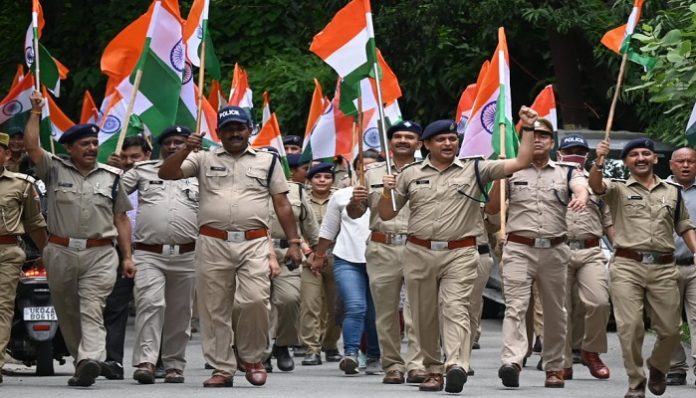 - पुलिस के अफसरों व जवानों ने निकाली करीब 09 किमी पैदल तिरंगा रैली